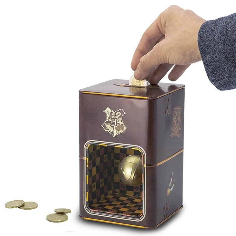 Harry Potter Tirelire magique Vif d’Or. Tirelire officielle Harry Potter. Insérez une pièce pour la voir disparaître sans déranger le Vif d’Or qui vole en suspension dans la tirelire.