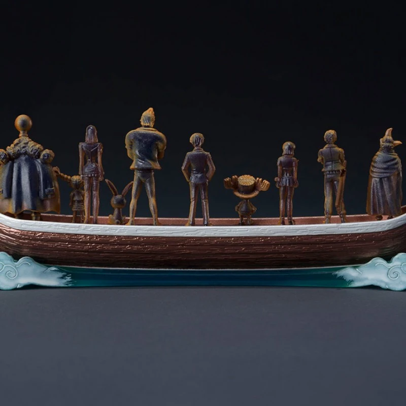 One Piece Réplique du Going Merry dans la gamme collector Chogokin de Bandai Tamashii. Bateau One Piece en métal et plastique, taill : 28 cm. Pour le 20e anniversaire de One Piece le département collection de Bandai sort le Going Merry en édition spéciale avec une voile anniversaire. Vous pouvez exposer le Merry brisé afin de recréer l’une des scènes culte de One Piece « l’adieu au Merry »